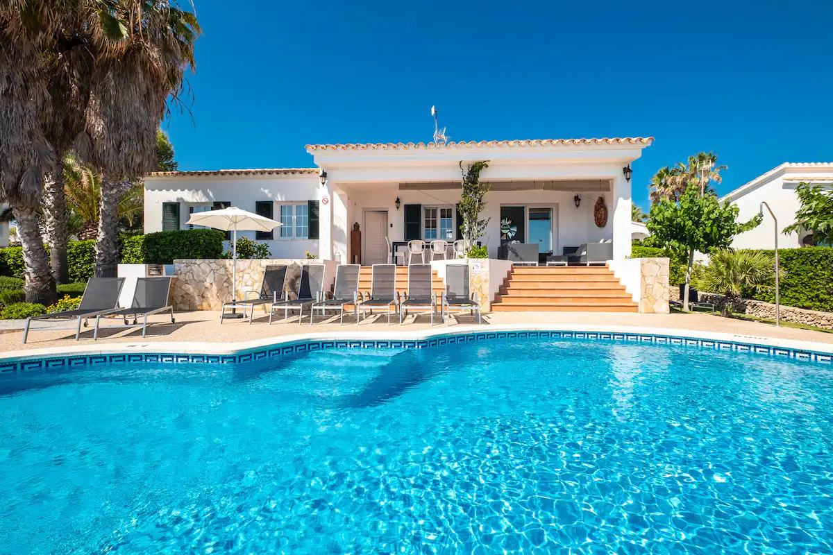 Esta elegante y espaciosa villa de 4 dormitorios, recientemente renovada, se encuentra en la popular localidad turística de Binibeca Vell, en la costa sureste de la isla. La villa está a pocos metros del mar y a poca distancia a pie del pueblo pesquero, de todas las tiendas y restaurantes y de la hermosa playa de Binibeca. Se trata de una villa de una sola planta, situada al final de una calle sin salida que le ofrece paz y tranquilidad, ideal para un grupo de amigos o familias numerosas. La villa está decorada con un nivel muy alto y lujoso.