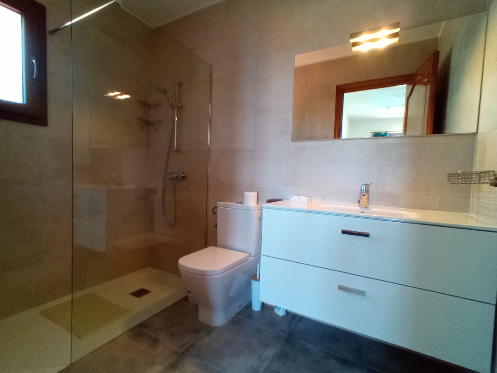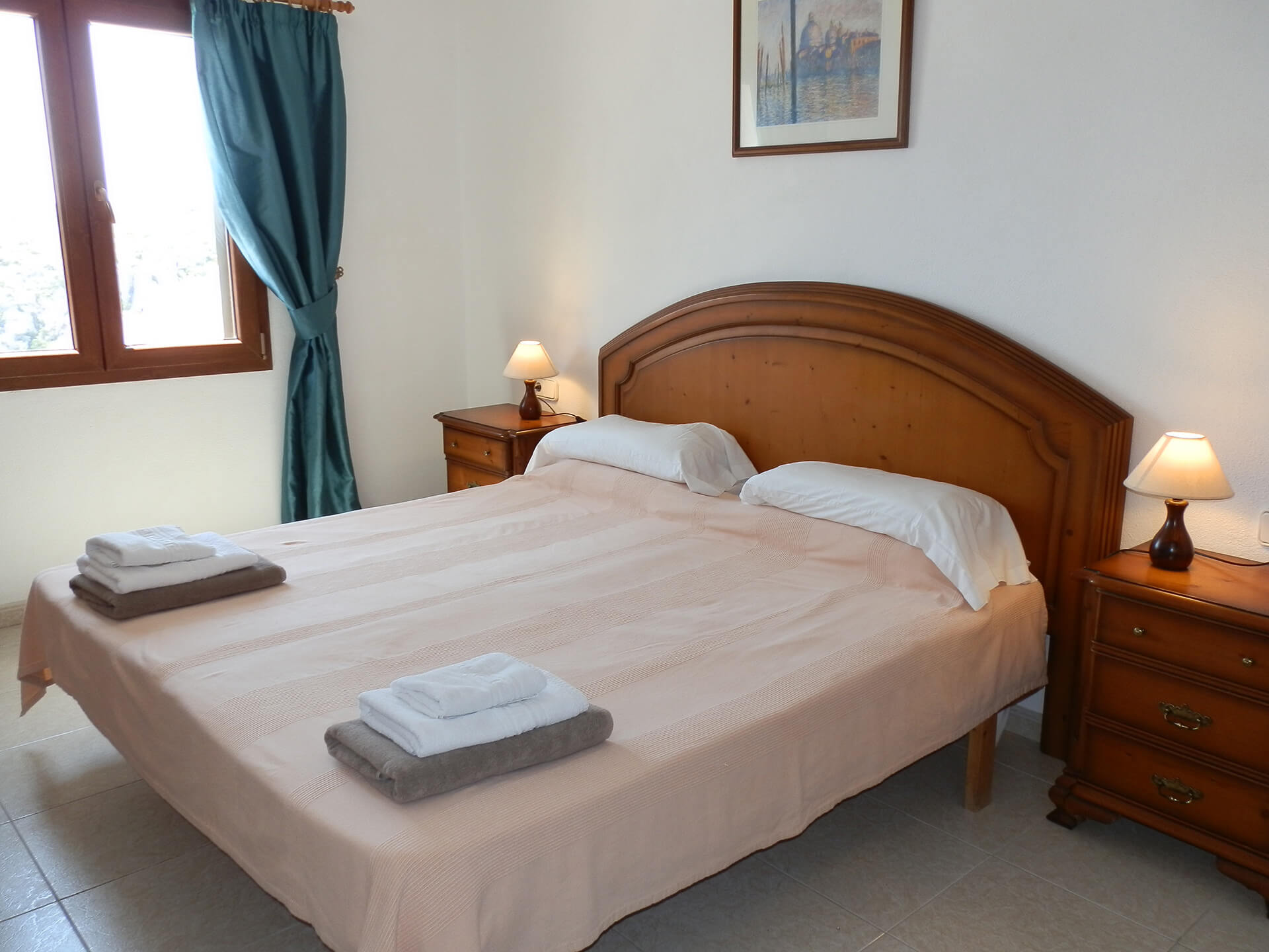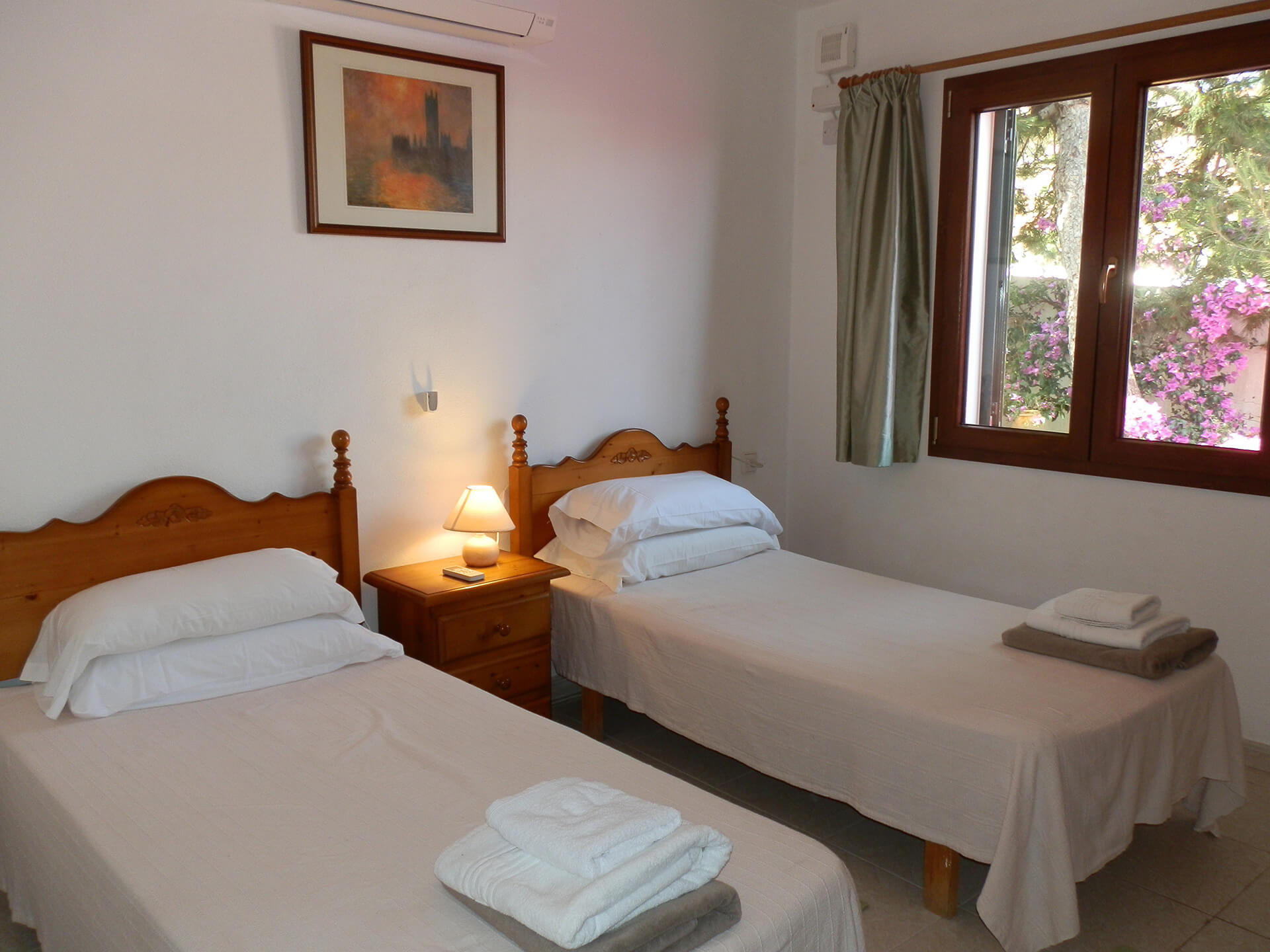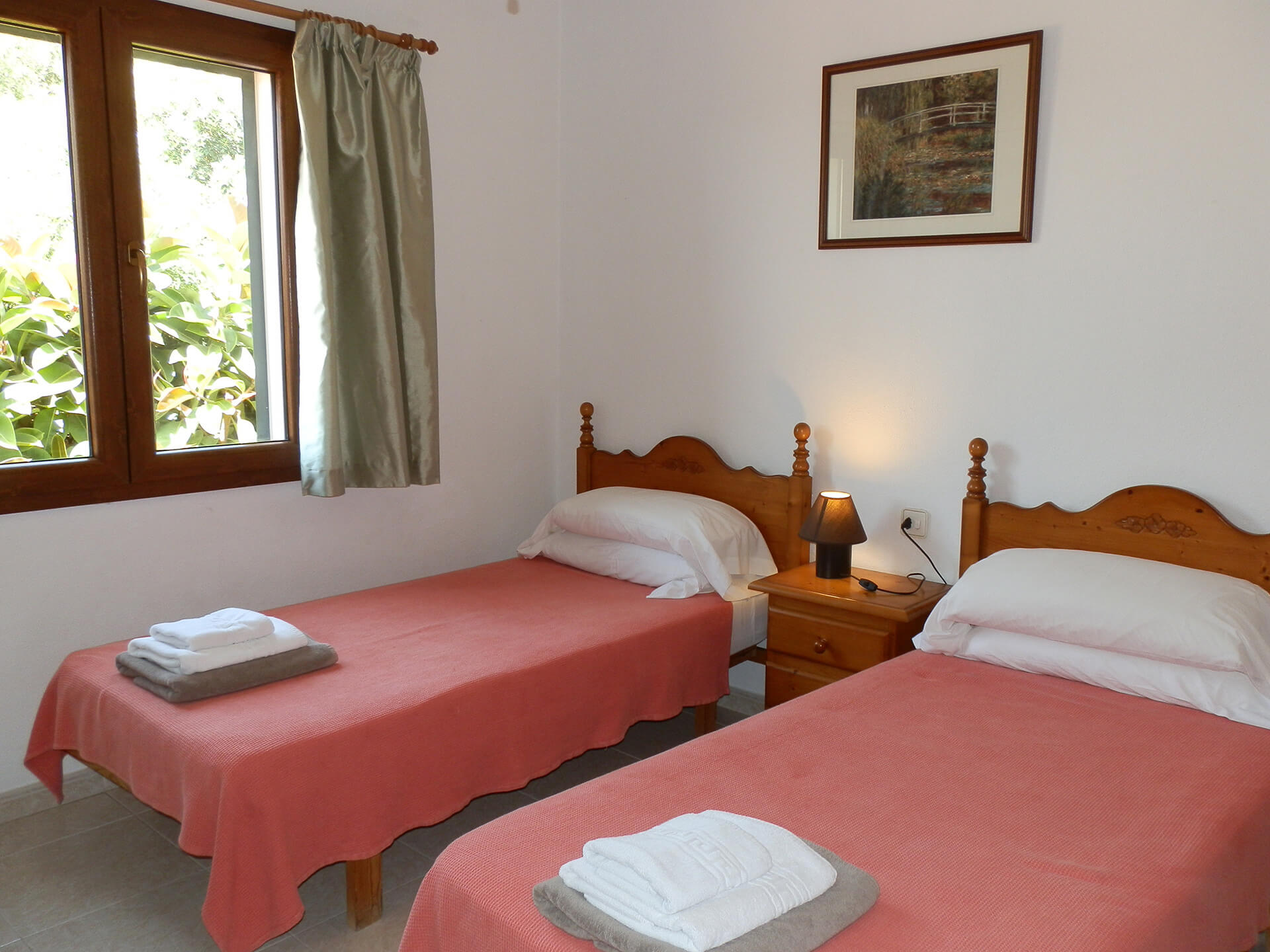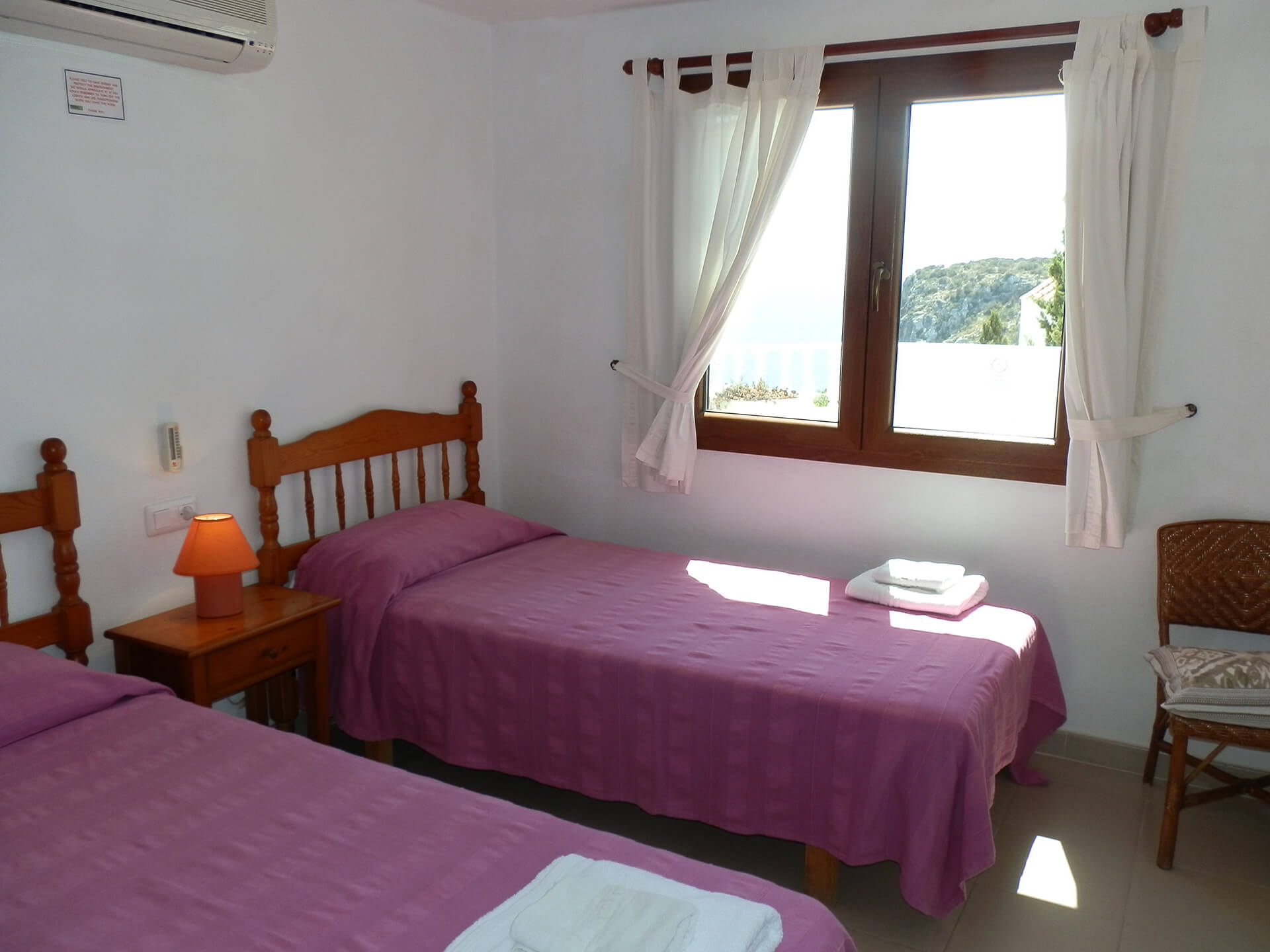 La propriété est composée de la maison principale et de l’annexe. La maison principale dispose d’une chambre principale avec salle de bain en suite, et de deux chambres doubles avec des lits simples qui se partage une salle de bain. Toutes ont l’air conditionné, des armoires encastrées et des ventilateurs de plafond.