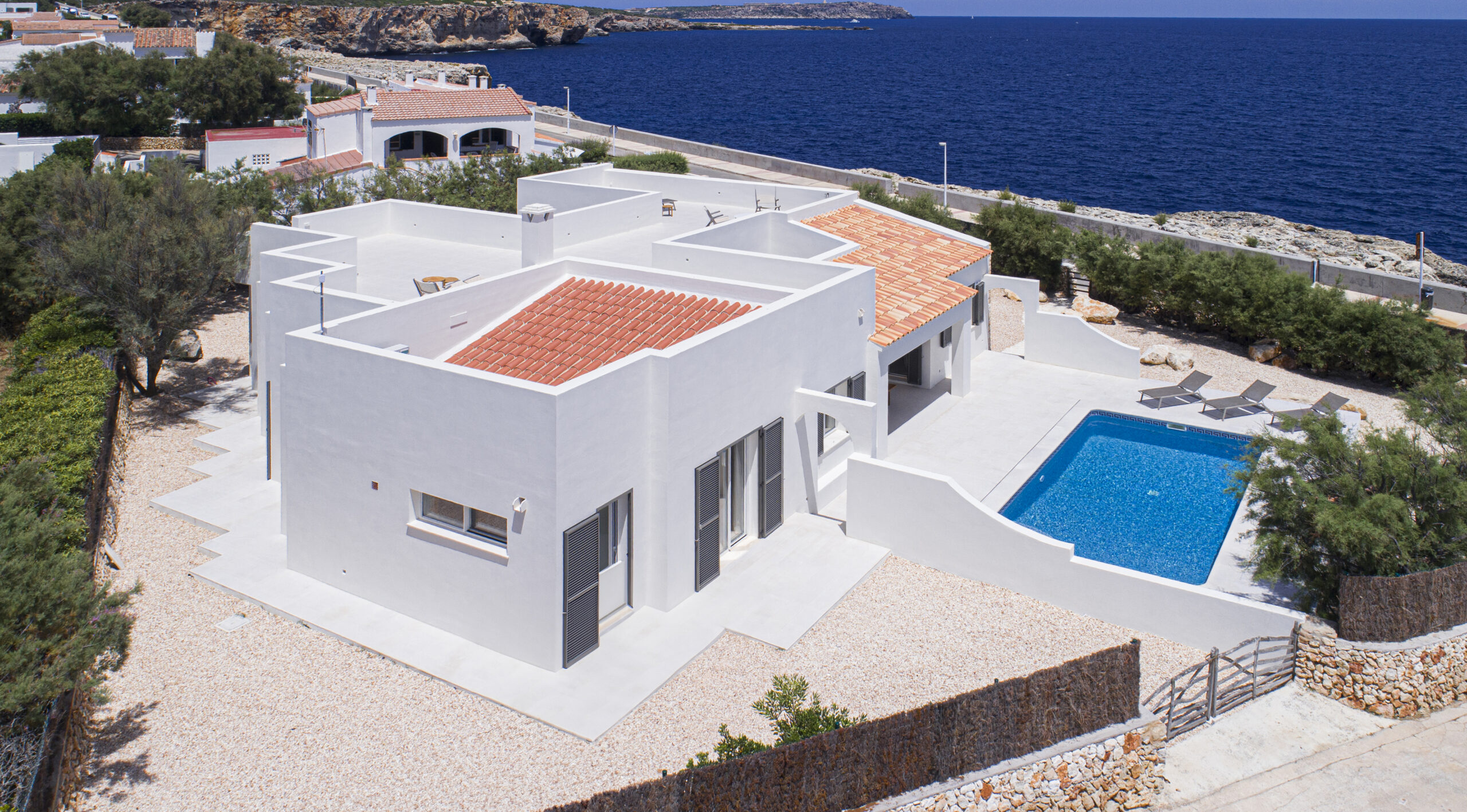 This is a spectacular newly built villa in the lovely resort of S´Algar on Menorca´s South East coast. It is in a Front line position overlooking the sea and the views over the Mediterranean from all of the house are stunning, especially from the villa´s huge roof terrace which covers the whole of the house. The house is a short stroll into the main town where there is a good choice of restaurants, bars and the recently opened beach club resort. Many of the islands lovely beaches are also only a short drive away.