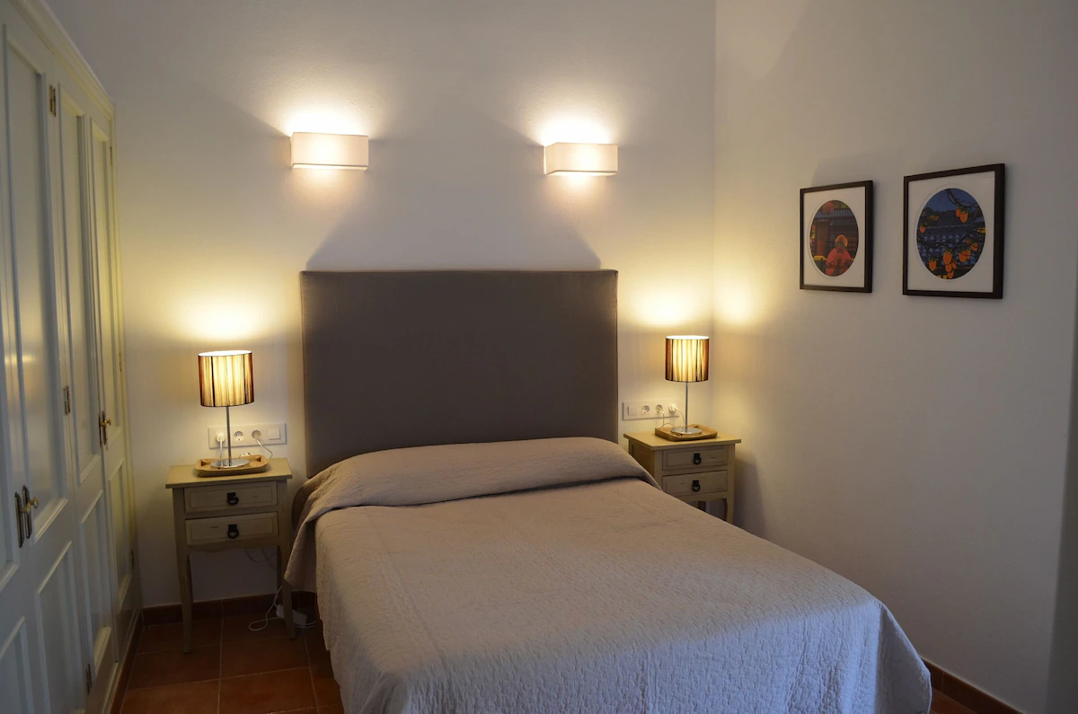 La deuxième chambre est une grande chambre à deux lits (qui peut être transformée en chambre double), elle aussi dotée d’armoires encastrées. Cette chambre dispose d’une salle de bains familiale avec une grande douche à l’italienne, un lavabo et des toilettes.