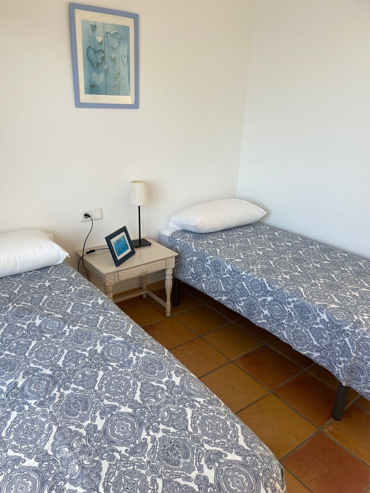 Off the lounge/dining area, you will find a long corridor with the 4 bedrooms off it. The Master Bedroom has a Queen Size double bed and next to that is a decent sized twin bedroom with a full shared family bathroom in between. Another double bedroom is found up from here with Queen size double bed and next to this is the final bedroom again with twin beds. All bedrooms are fully air conditioned.