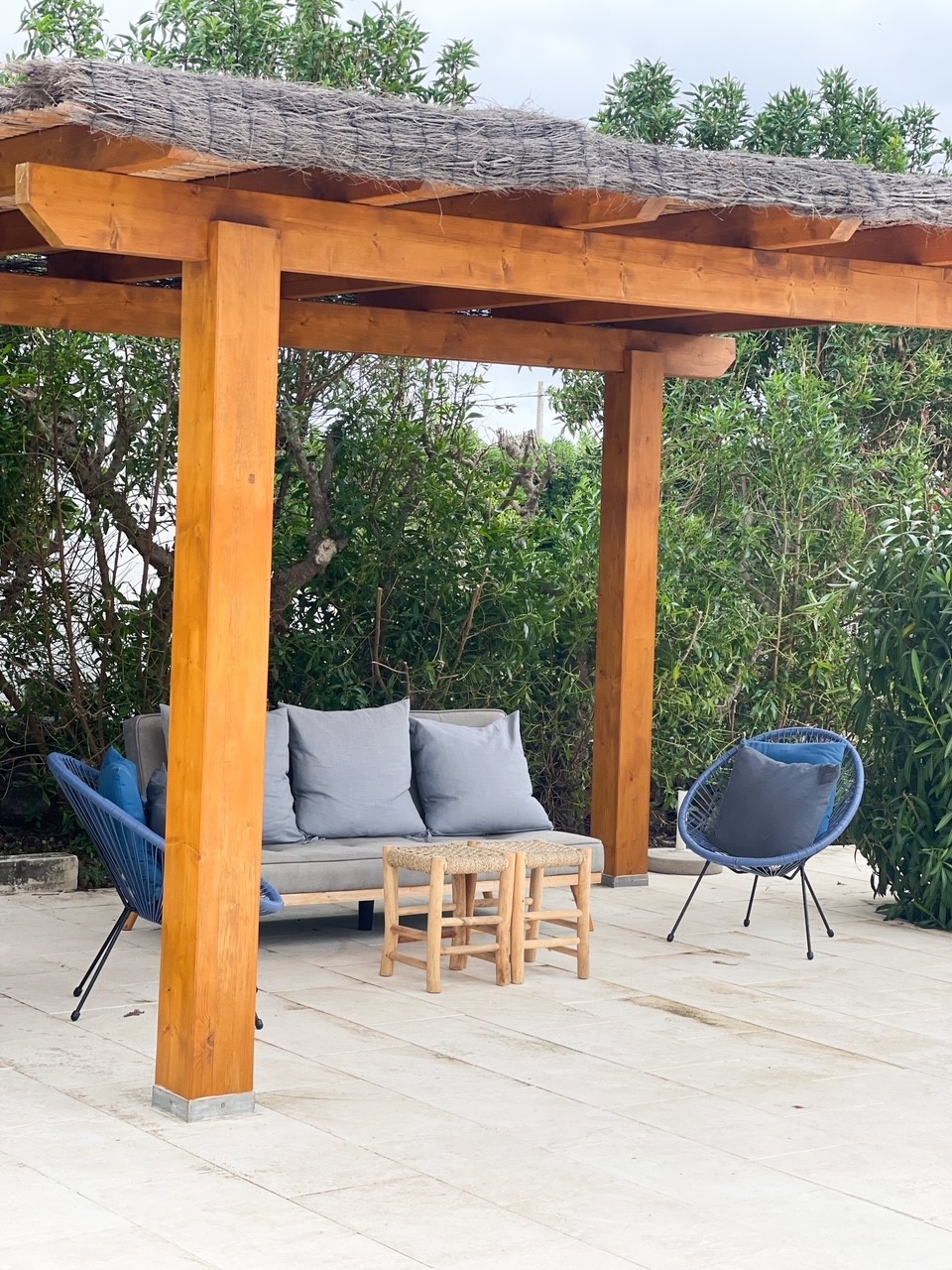 Outside the villa is a good sized swimming pool (9 x 4m), with Roman steps access. It is 1.9m at it’s deepest and .9m in the shallow end. There is plenty of room to sunbathe as well as a covered terrace if you want to find some shade. There is a BBQ area and a roof terrace with sea views. At the front of the villa there is room to park a car on the driveway.