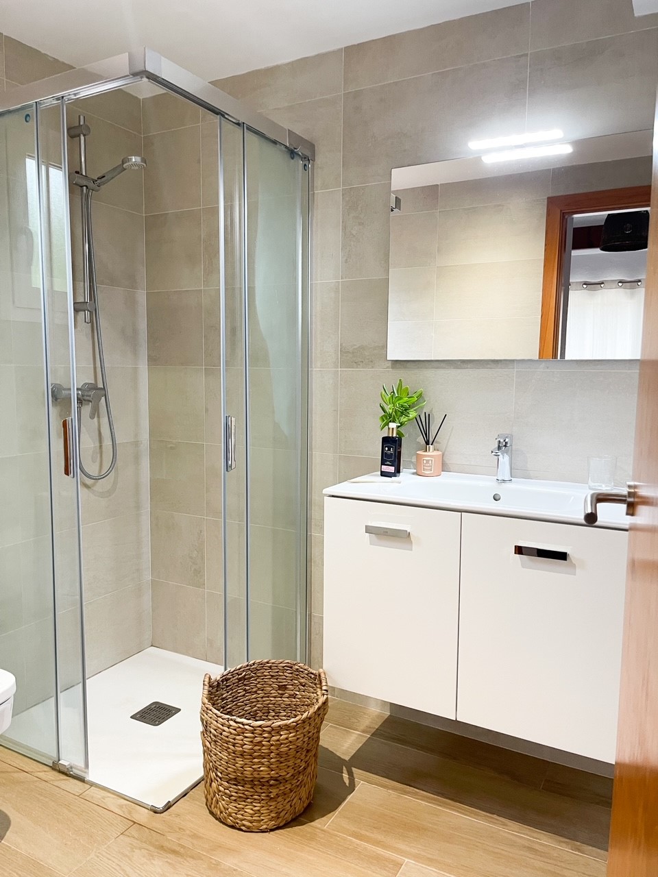 The third bedroom has twin beds with fitted wardrobes and it’s own en-suite shower room, with sink.