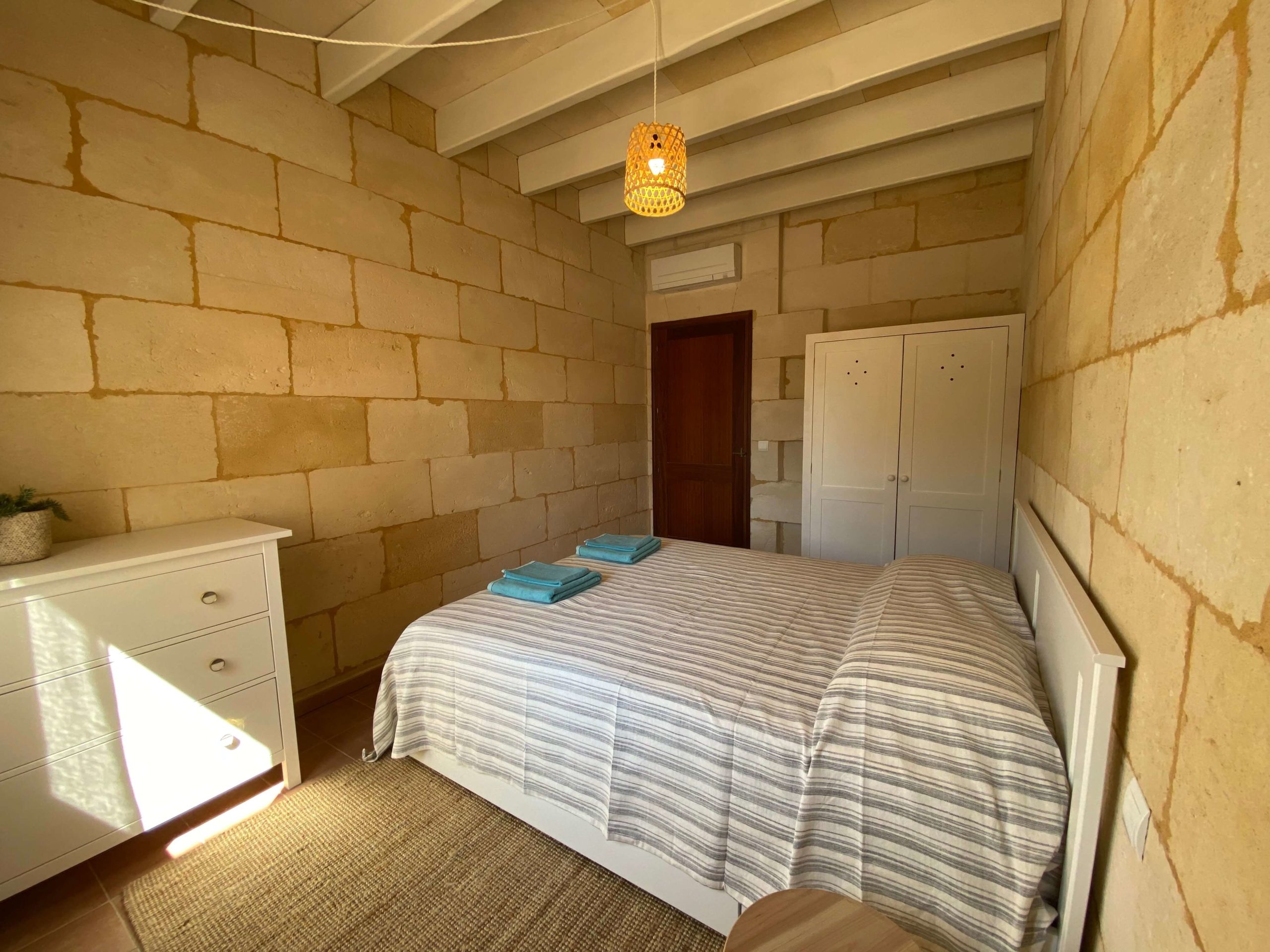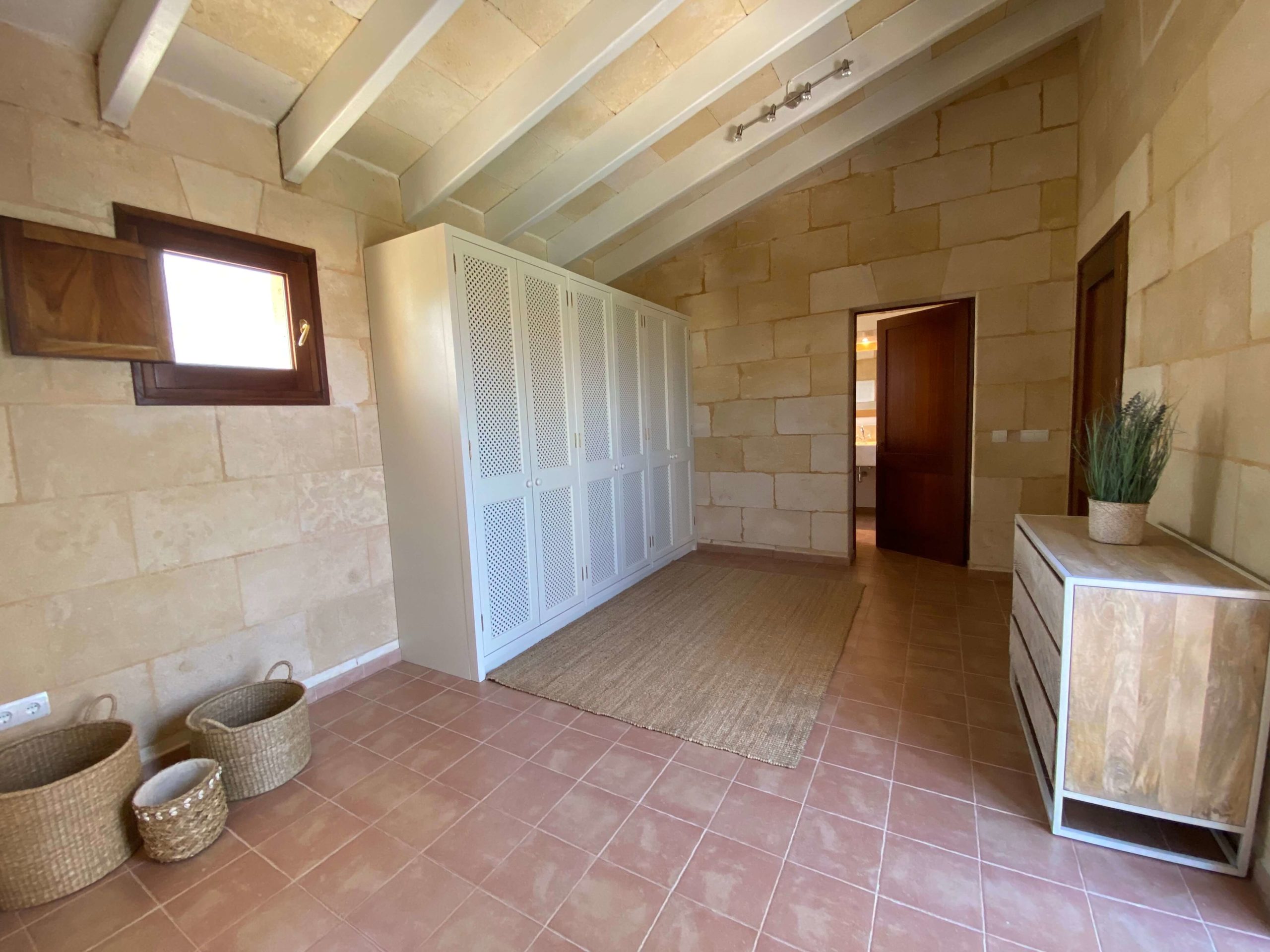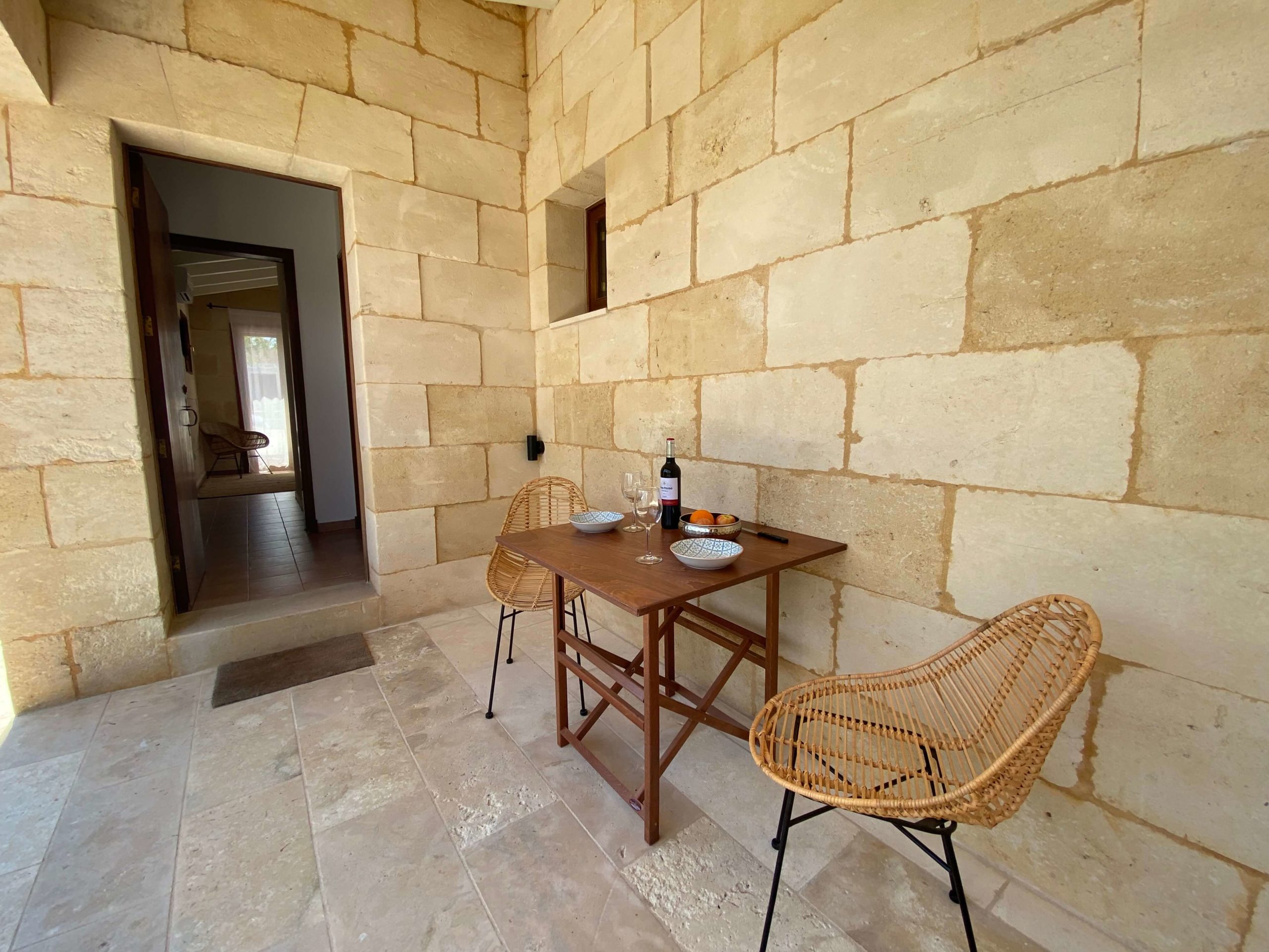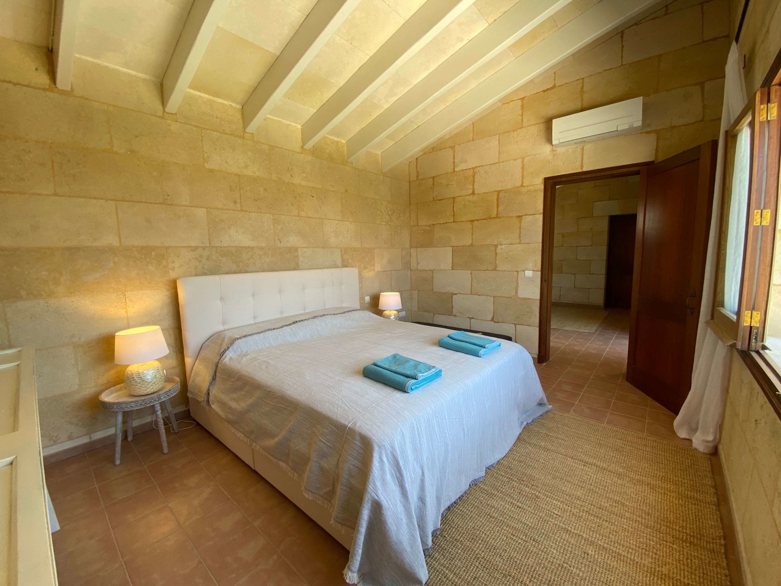 The Master suite with double bed is entered through a spacious dressing room and has a unique modern handmade bathroom which is in keeping with the traditional Menorcan style. This en-suite has a vanity unit, shower and WC. The Master suite has lovely sea views.