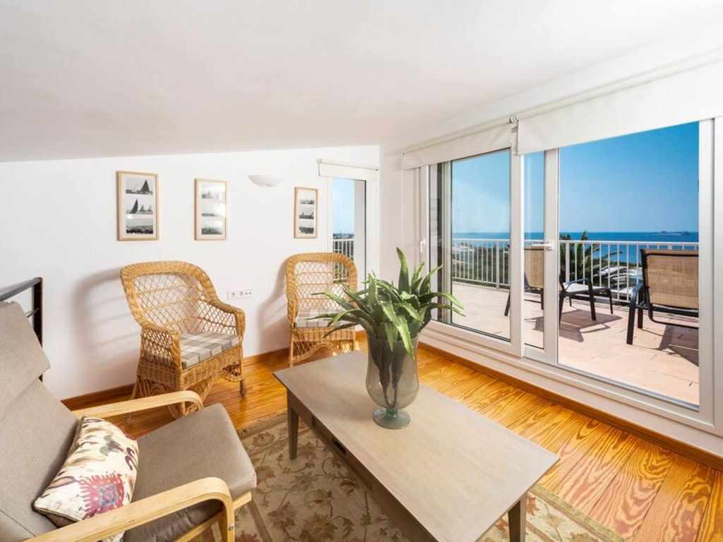 The large covered terrace located on the ground floor contains a brick BBQ, and is an ideal place for family meals enjoying the incredible sea views, next to the 9m x 4.5m swimming pool and sun loungers, surrounded by a garden and relaxation areas. Upstairs, from the lounge, is an indoor mezzanine area with chairs and beautiful sea views leading out to the large sun terrace where you will be able to enjoy unique views of the southern Menorcan coast, from Binibeca as far as the light-house located on the Isla del Aire in Punta Prima.