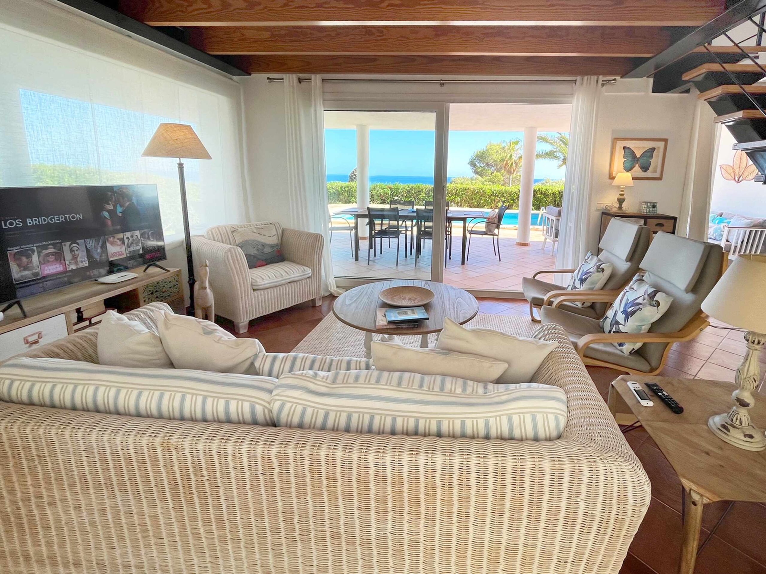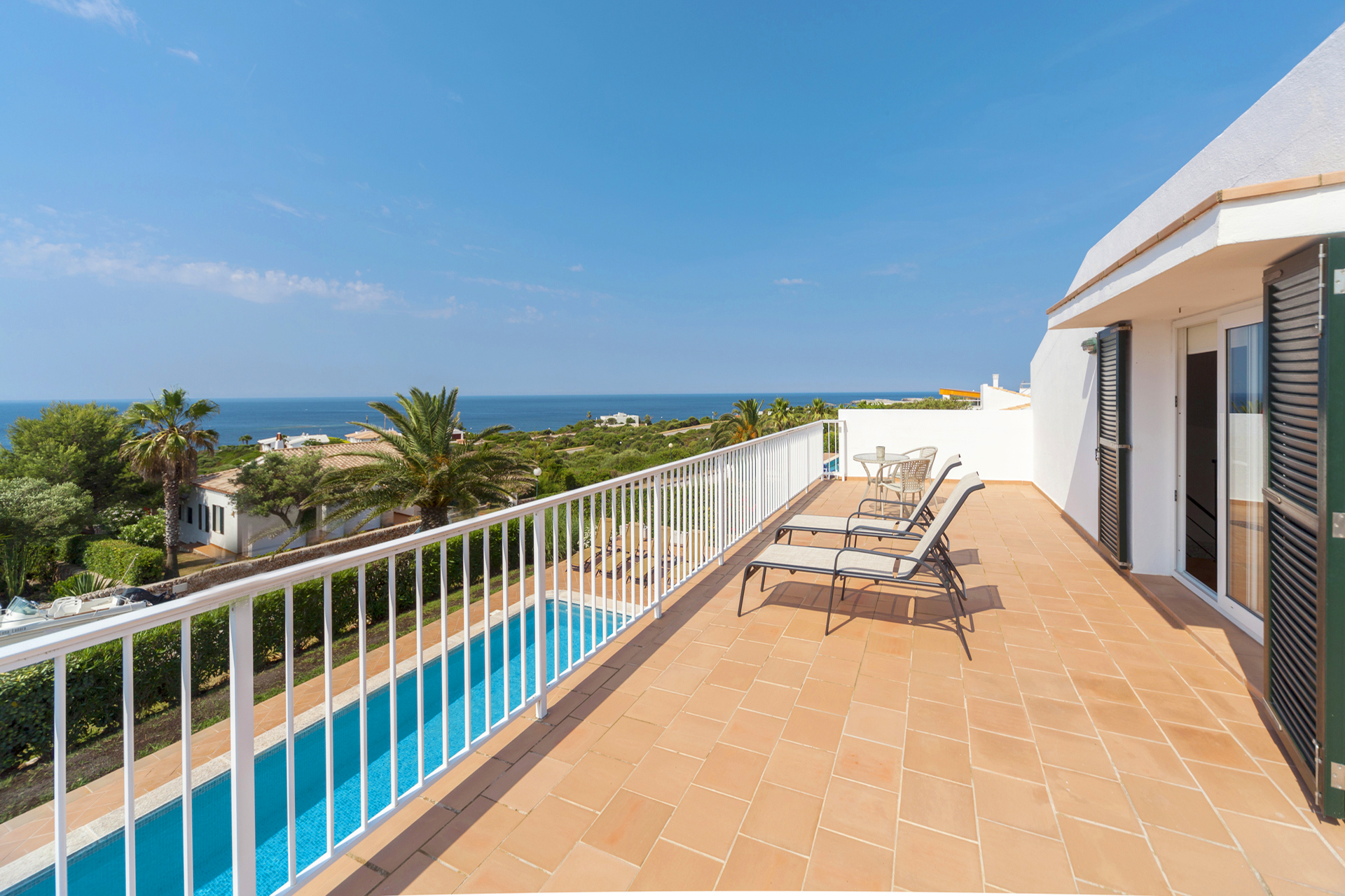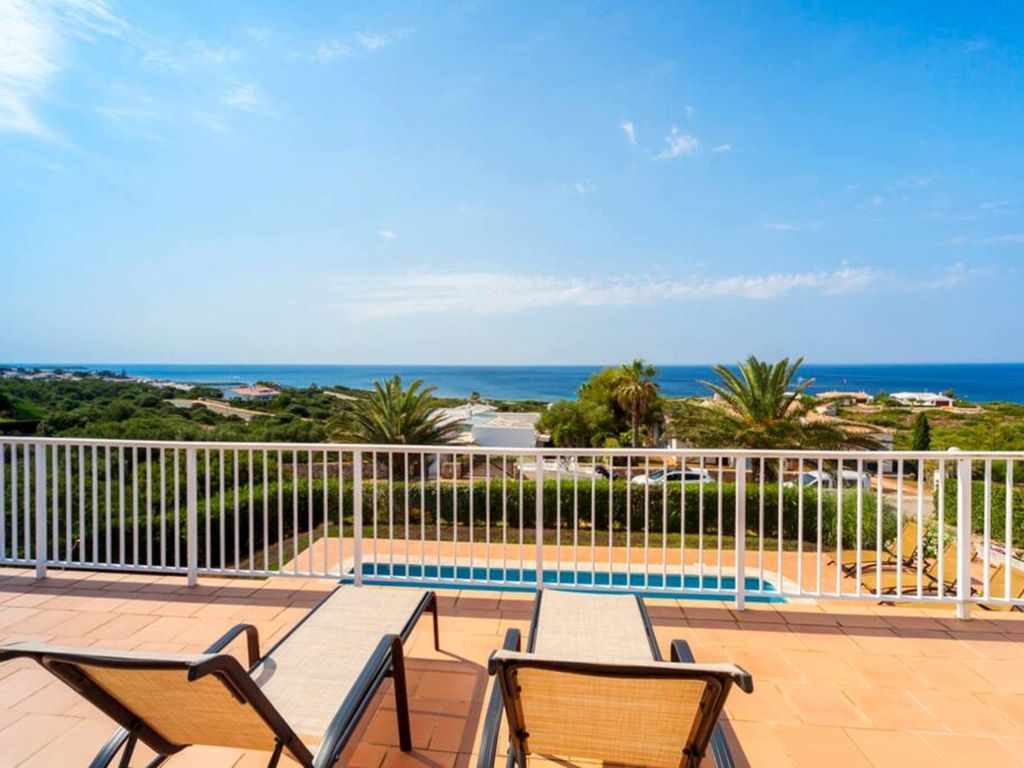 The large covered terrace located on the ground floor contains a brick BBQ, and is an ideal place for family meals enjoying the incredible sea views, next to the 9m x 4.5m swimming pool and sun loungers, surrounded by a garden and relaxation areas. Upstairs, from the lounge, is an indoor mezzanine area with chairs and beautiful sea views leading out to the large sun terrace where you will be able to enjoy unique views of the southern Menorcan coast, from Binibeca as far as the light-house located on the Isla del Aire in Punta Prima.