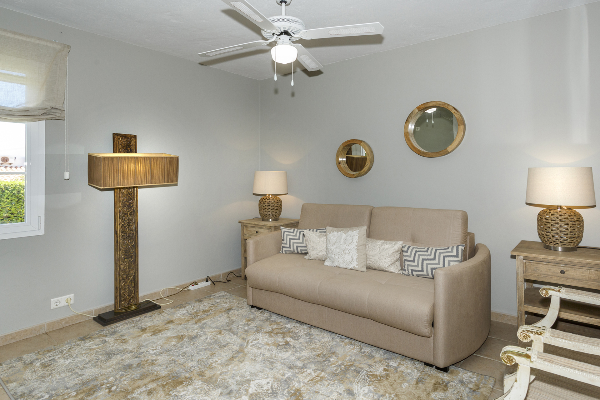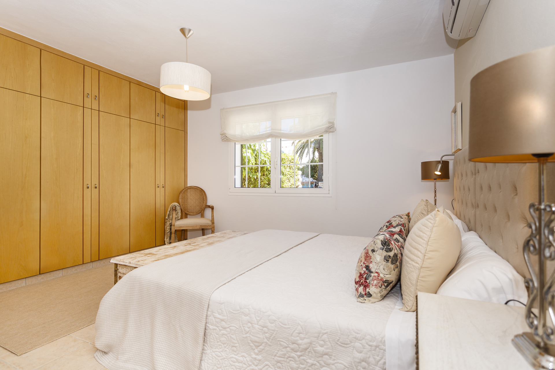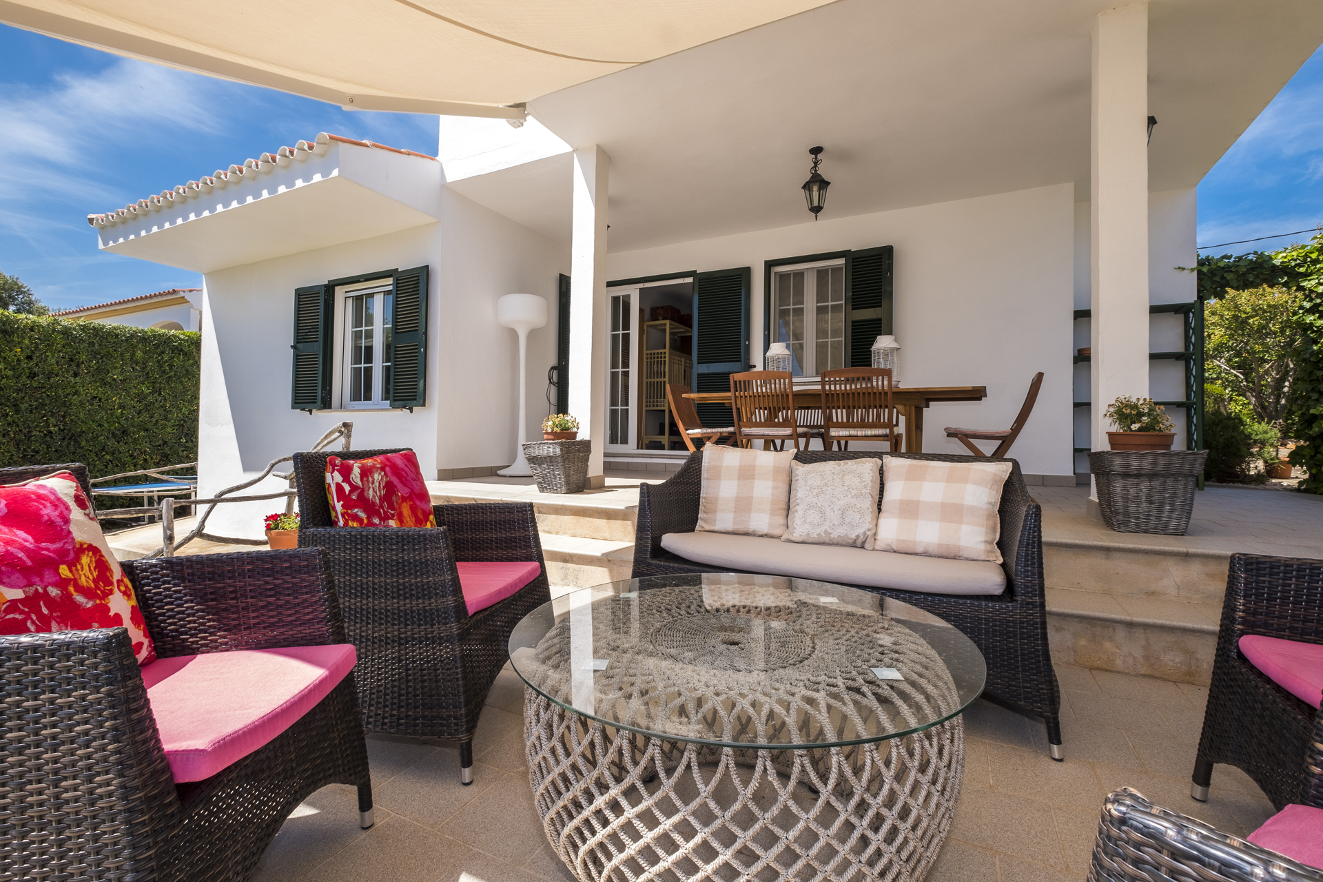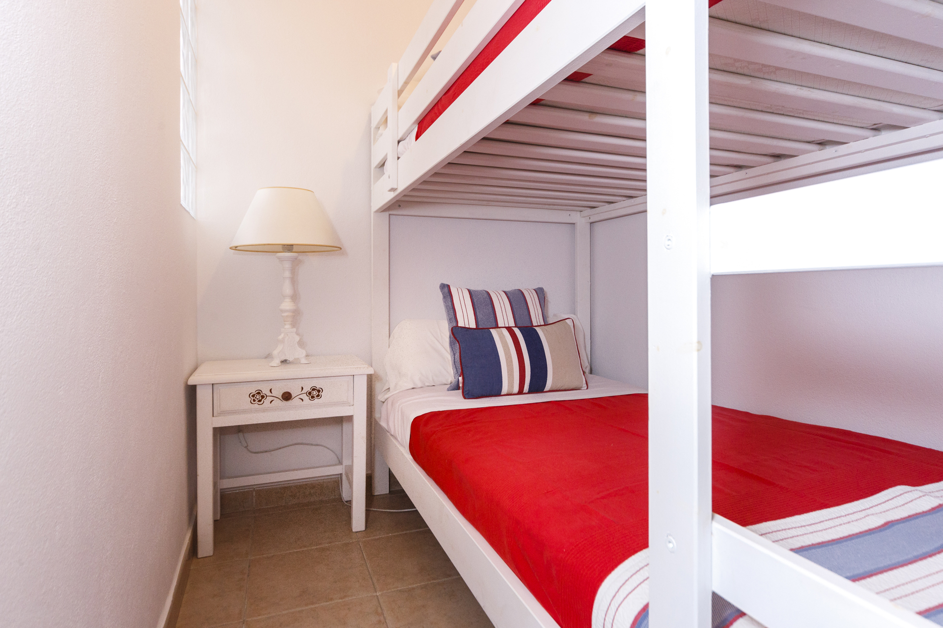 Villa Jarama is a stylish 4 bedroom villa located in Binibeca Vell on the South East coast of the island. The villa has 3 large double bedrooms with built in wardrobes consisting of a large Master Suite with King Size bed, another bedroom with double bed and a third with 2 single beds. The 4th bedroom is a small bedroom with 90 cm bunk beds so ideal for children.