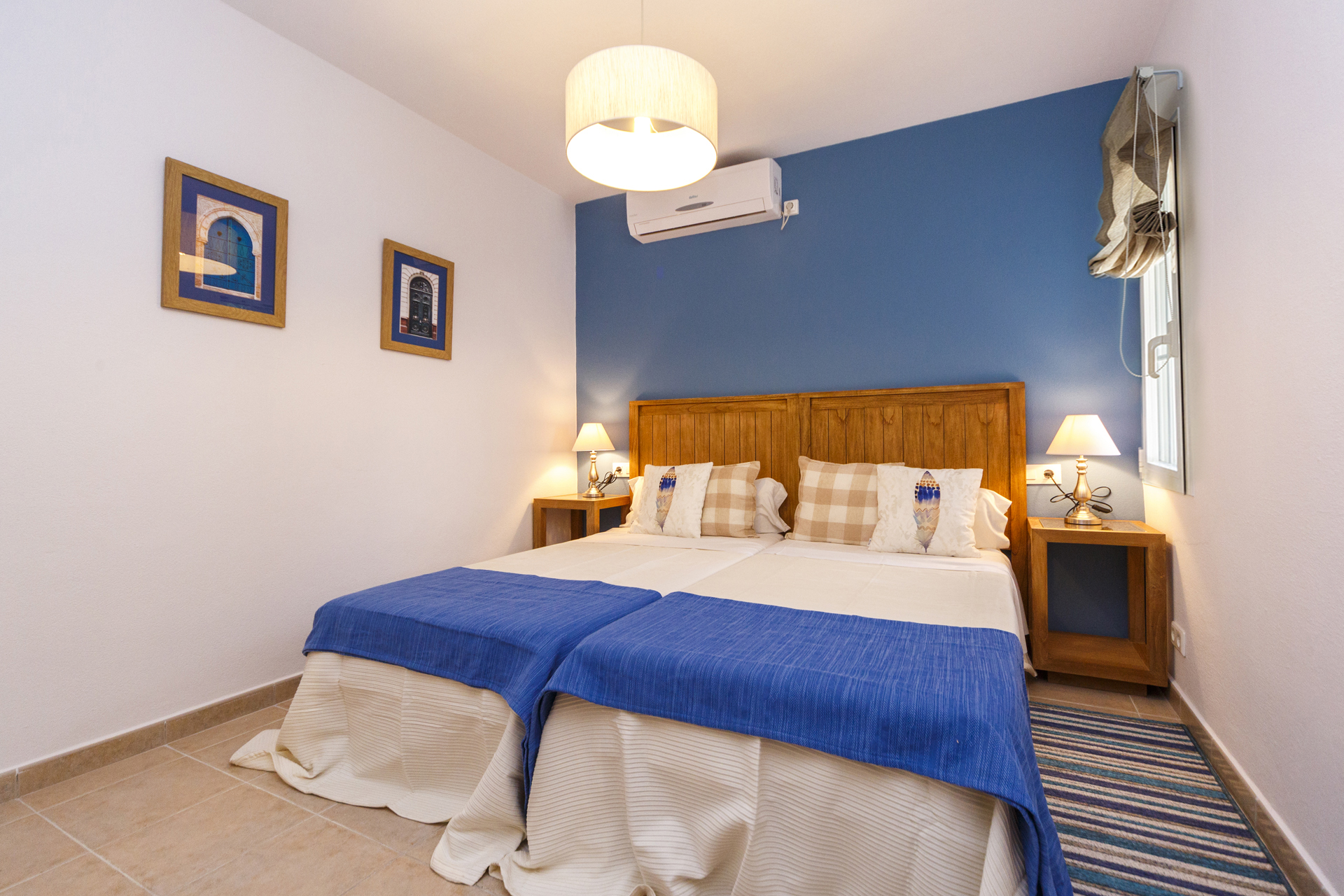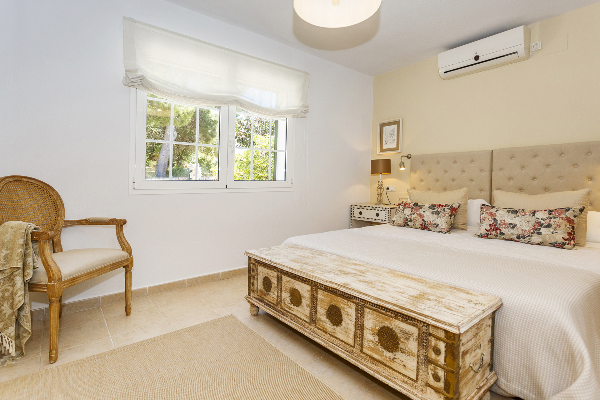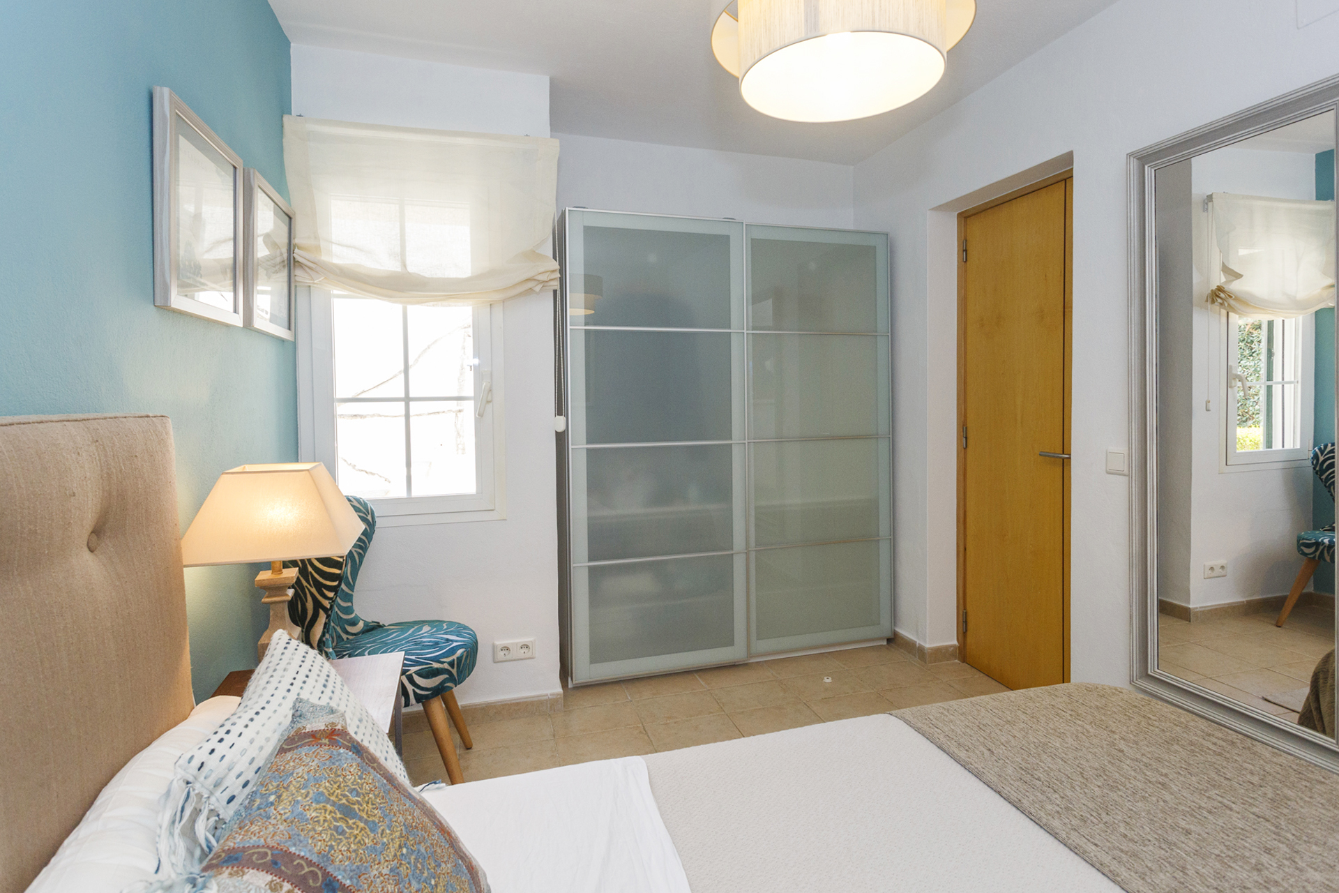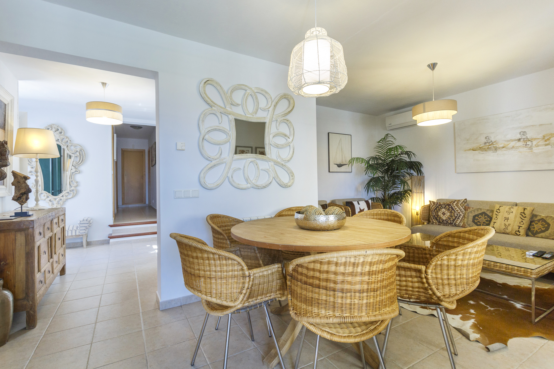Villa Jarama is a stylish 4 bedroom villa located in Binibeca Vell on the South East coast of the island. The villa has 3 large double bedrooms with built in wardrobes consisting of a large Master Suite with King Size bed, another bedroom with double bed and a third with 2 single beds. The 4th bedroom is a small bedroom with 90 cm bunk beds so ideal for children.