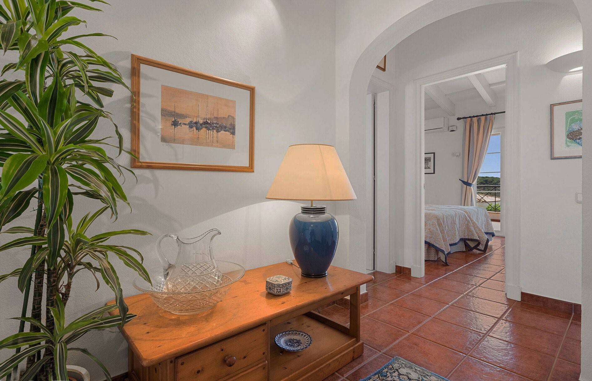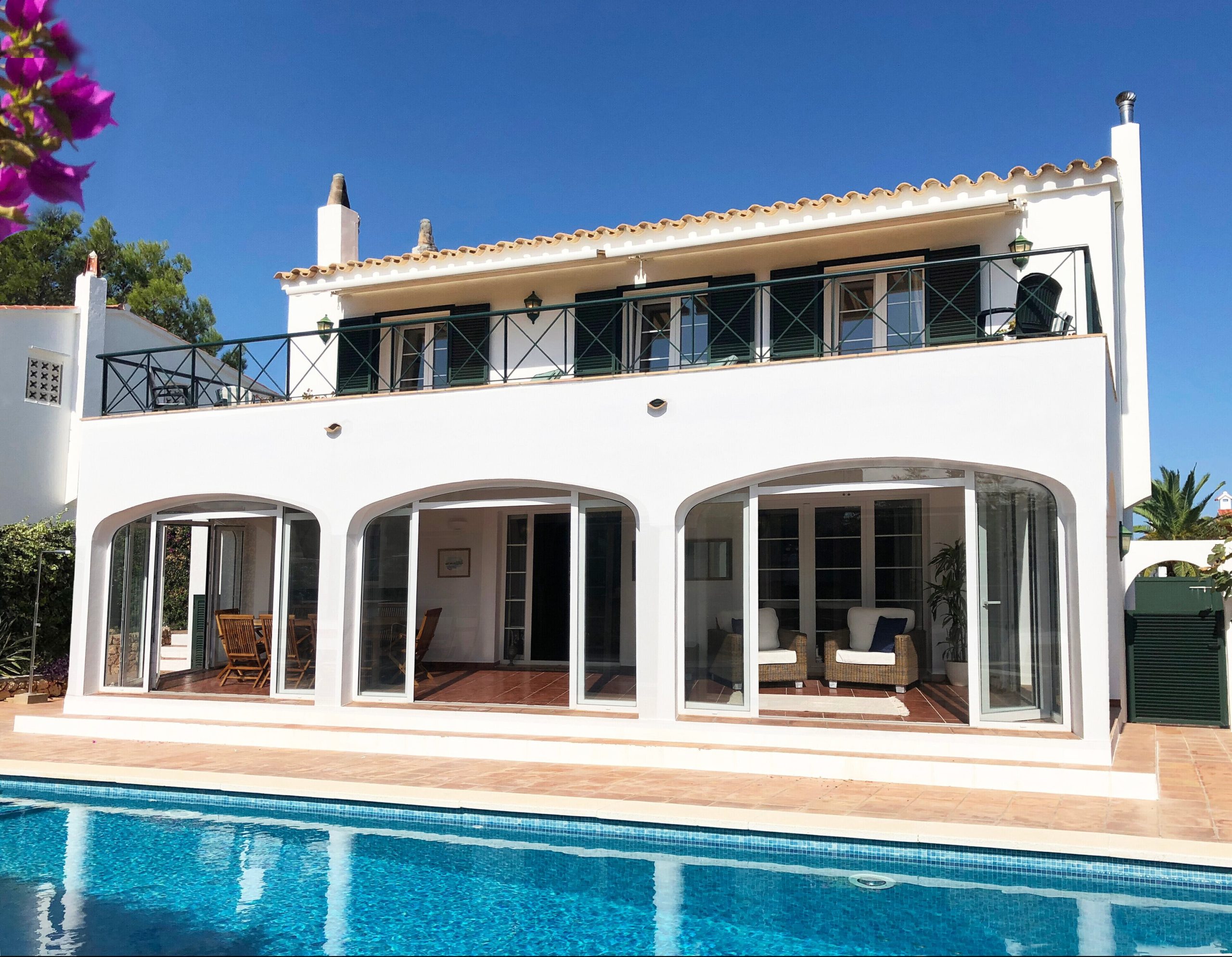 The villa is a couple of minutes stroll both down to the marina with its café and water sport options or up to the bars, restaurants and shops of the small commercial centre of Addaia. The famous and iconic Cami de Cavalls, the ancient but restored bridle path that encircles virtually all of Menorca’s coastline passes through Addaia. It is a walkers, hikers and nature lovers’ paradise! Addaia is ideally located, being a short drive to the wonderful beaches of Arenal den Castell, Na Macaret and Son Saura. A little further is the beach of Playa de Fornells and its historic and beautiful small town, marina and port, which provides a host of fine dining opportunities, bars, shops selling a wide range of artisan products, and breath-taking coastal views and walks (including the huge bay of Fornells). Menorca’s abundance of south coast beaches such as Binibeca, Punta Prima, Alcalfar, Cala En Porter etc are around 40-minute drive.