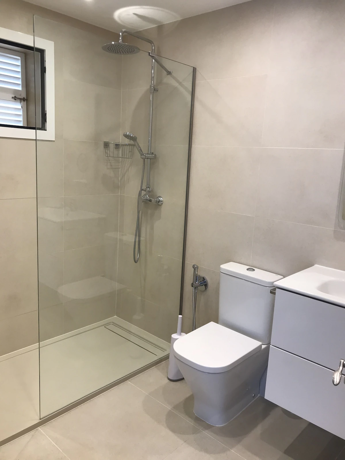 The second bedroom is a large twin bedroom (which can be prepared as a double), again with integrated wardrobes. This bedroom has the use of a family bathroom with a large walk-in shower, vanity basin and WC.