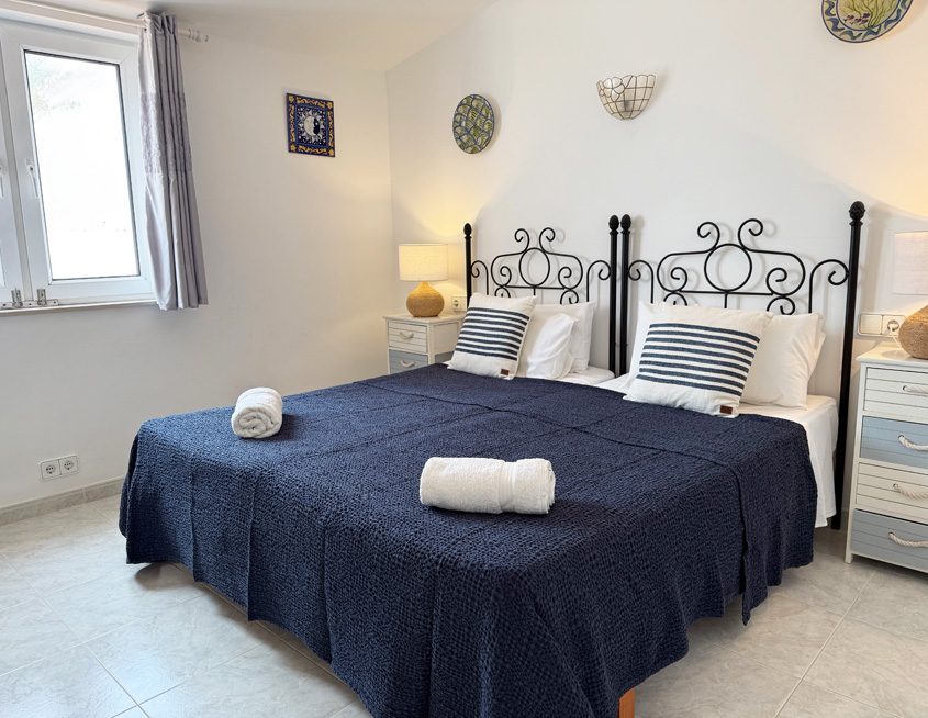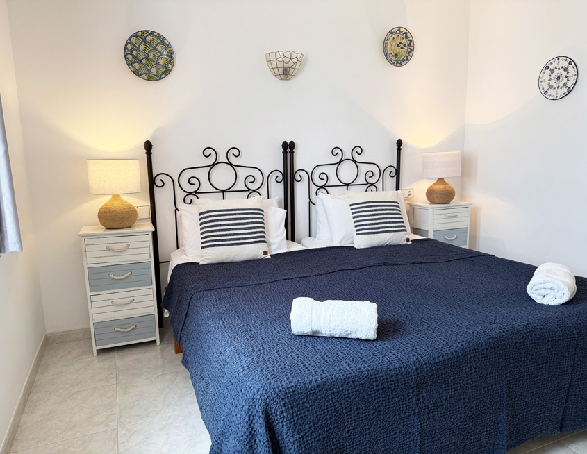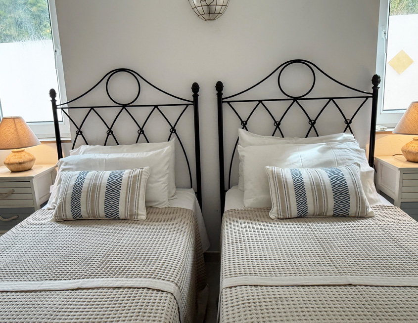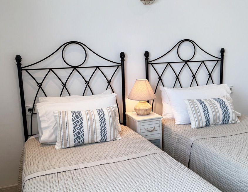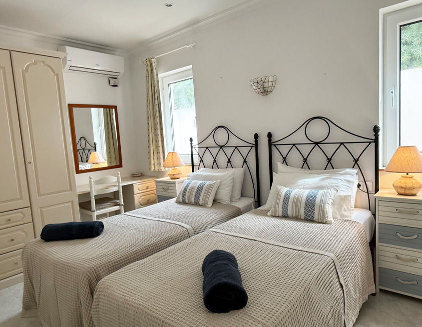 - Two twin bedrooms, each with a pair of single beds