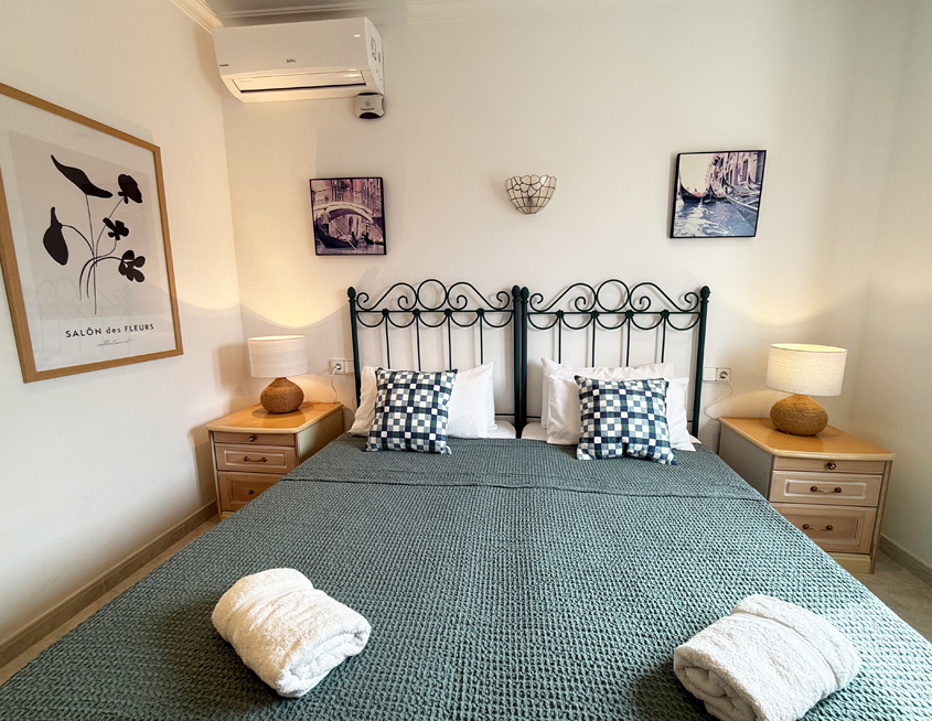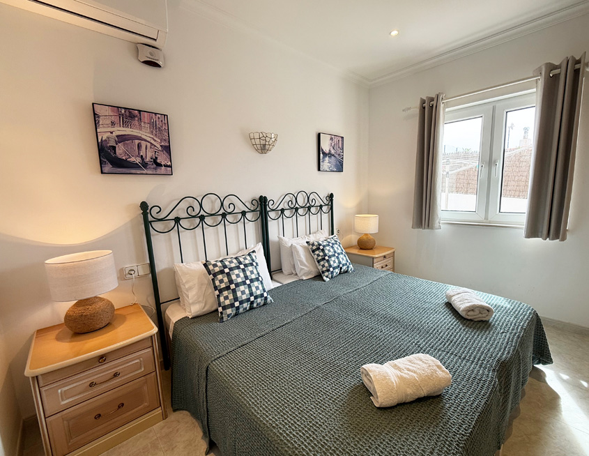 There are four bedrooms, all of which are air-conditioned: